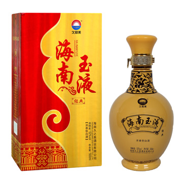 海南玉液酒是海南久之美酒業有限公司為海南本土市場量身定制的優質濃香型白酒,飲后或豪飲后均不上頭、不口干、身體恢復快。2012年被海南省工商局認定為“海南省著名商標”;2013年被海南省名牌產品認定委員會授予為“2013年海南省名牌產品”稱號。該酒經多位國家級和省級評酒專家品評,一致認同海南玉液酒不亞于“五糧液” 。該酒的包裝設計富有強烈時代氣息和濃厚地方特色,創造性地采用了“要想身體好常來海南島”宣傳海南的流行語,溶匯了海南文化元素,適宜接待應酬及做饋贈禮品,是海南...[更多內容]